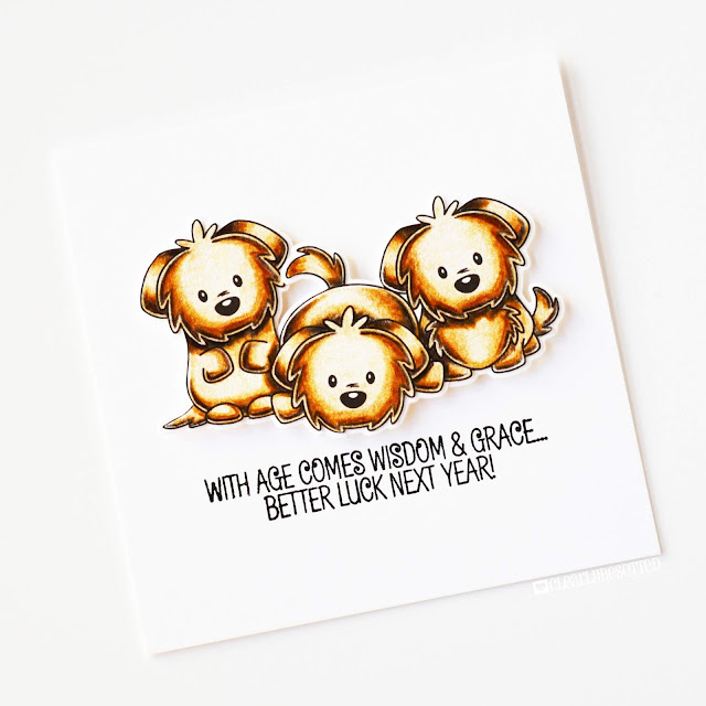 Stamps - Puppy Love & Laugh Out Loud / Dies - Puppy Love Die Collection / Ink - VersaFine Onyx Black / Colouring Medium - FaberCastell Polychromos / Other - Inkadinkado Stamping Mask Paper